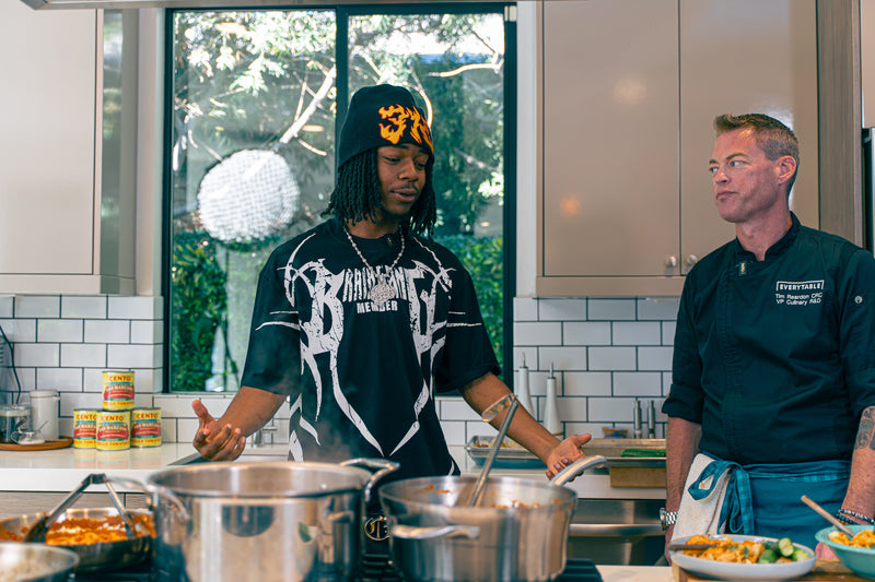 310babii is known for his number-one singles, sold-out tours, and global energy; he rose to fame in 2023 with the release of his single "Soak City", which made the Billboard Hot 100 and received platinum certification by the Recording Industry Association of America. Now he’s bringing that same heat to the kitchen. 310babii stepped into the kitchen with Everytable’s “Uncle Tim” to cook up his dream pasta, “It’s restaurant-level” flavor, made from scratch — and made for everyone.