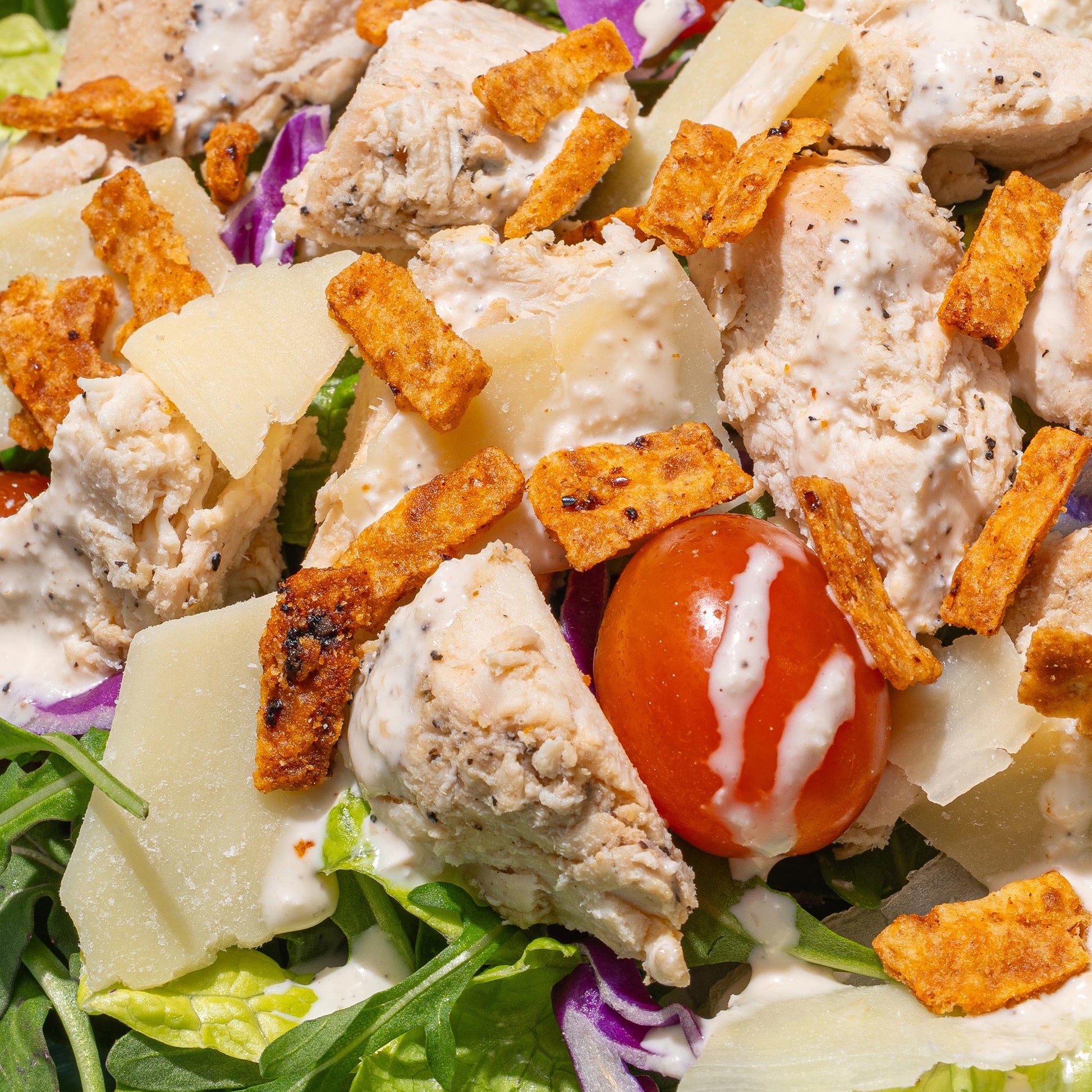 Your basic caesar salad just glowed up, and you’re going to love it. Featuring organic arugula, romaine, all natural lemon-pepper chicken breast, za'atar spiced pita crisps and Thai basil. With parmesan & black pepper dressing on the side.Lemon Pepper Chicken Caesar Salad