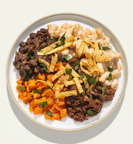 A remix of two classics, braised birria in a spiced sauce and creamy mac & cheese with a side of hot honey sweet potatoes and black beans. A bold blend of cultures, just like G Perico’s music. -